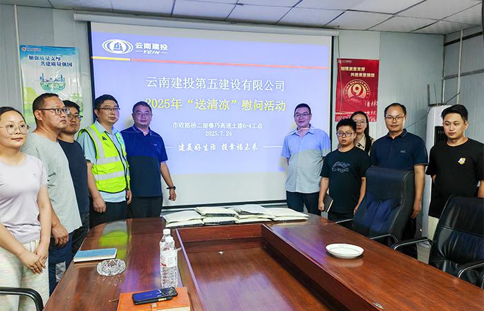 7月24日,公司副總經(jīng)理匡浩到市政路橋二部負(fù)責(zé)施工的魯巧高速公路6-4工點項目開展汛期安全檢查暨夏季“送清涼”慰問活動,為一線管理人員送去關(guān)懷與清涼,并就汛期安全生產(chǎn)及工程進度推進提出工作要求。