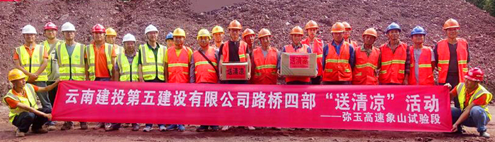 技術(shù)支持: 方森科技 8月20日下午,直管部黨支部組織慰問組,到彌玉高速象山試驗(yàn)段項(xiàng)目部施工一線為在炎炎夏日中堅(jiān)持工作的職工和農(nóng)民工“送清涼”。