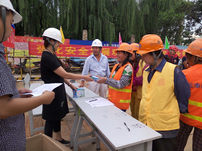 技術(shù)支持: 方森科技 6月23日,公司工會(huì)組織禁毒宣傳小組到昆明市高新區(qū)海源財(cái)富中心項(xiàng)目現(xiàn)場(chǎng),向現(xiàn)場(chǎng)五〇八直管項(xiàng)目部、五〇四直管項(xiàng)目部、第三安裝直管項(xiàng)目部的一線項(xiàng)目管理人員及勞務(wù)班組人員共160余人進(jìn)行了禁毒知識(shí)宣傳活動(dòng)和“送清涼”慰問活動(dòng)。