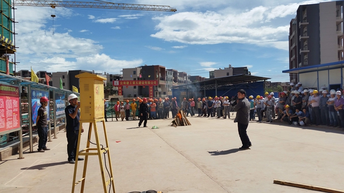 技術(shù)支持: 方森科技 6月25日下午15點(diǎn),由五〇三直管項(xiàng)目部施工的楚雄陽光花園小區(qū)三期保障性住房項(xiàng)目部開展消防演練。楚雄市住房和城鄉(xiāng)建設(shè)局副局長趙興副和楚雄市住建局工程質(zhì)量安全監(jiān)管科副科長申宇等,帶領(lǐng)楚雄市多個(gè)在建工地人員150余人,到由演練現(xiàn)場參觀學(xué)習(xí)。
