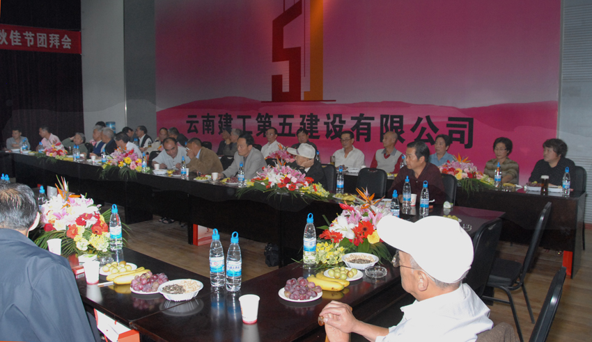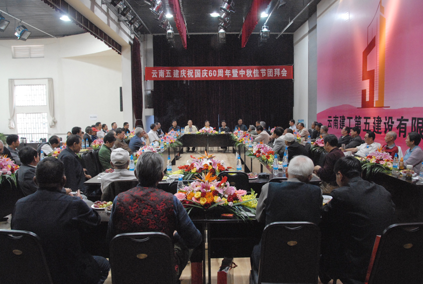五建設有限公司于9月25日召開慶祝新中國建立六十周年國慶暨中秋佳節(jié)團拜會,離退休的公司原老領導、老勞模、老同志以及調任上級部門和兄弟單位領導代表與現(xiàn)任公司領導班子成員齊聚一堂,結合公司發(fā)展暢談國家發(fā)展變化。