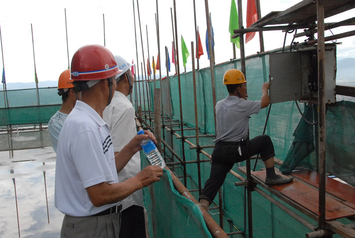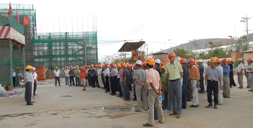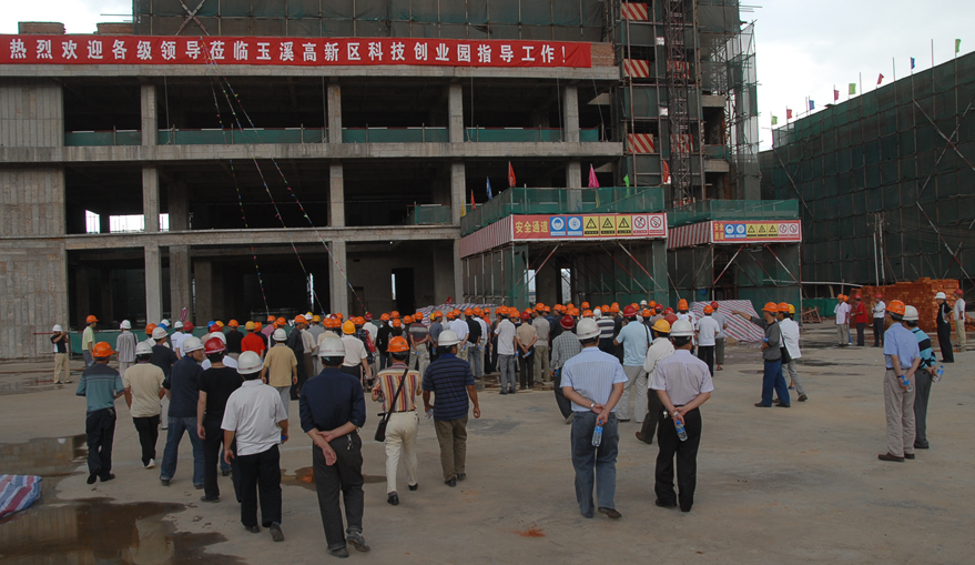 其中,一分公司玉溪高新區(qū)科技創(chuàng)業(yè)園工程項(xiàng)目部在安全施工教育、安全生產(chǎn)制度建立、安全生產(chǎn)監(jiān)督檢查、安全標(biāo)志和安全設(shè)施配置等各方面,進(jìn)一步加強(qiáng)安全施工管理,受到了當(dāng)?shù)亟ㄔO(shè)管理部門和甲方的高度評價(jià)。6月24日,玉溪市建設(shè)局組織玉溪市及所屬五縣一區(qū)建設(shè)局及安監(jiān)、質(zhì)監(jiān)、監(jiān)理單位和160多個三級以上資質(zhì)的施工企業(yè)人員共250多人,到云南建工五建一分公司施工的玉溪高新區(qū)科技創(chuàng)業(yè)園工程項(xiàng)目部工地觀摩學(xué)習(xí)。