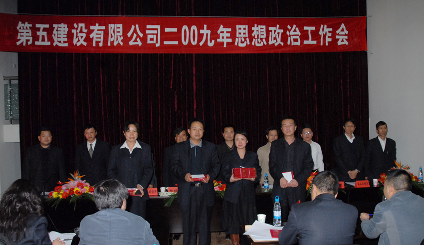 五建設有限公司思想政治工作會于2009年3月3日召開。會議對上年度公司思想政治工作進行了總結(jié),根據(jù)集團和公司職代會精神,對今年工作作出安排。對2008年度職工思想政治工作研究先進集體、優(yōu)秀論文作者、新聞報道工作先進單位和先進個人進行了表彰。結(jié)合今年公司工作目標確定并下發(fā)了加強宣傳報道工作實施辦法和當前職工思想政治工作研究參考選題。