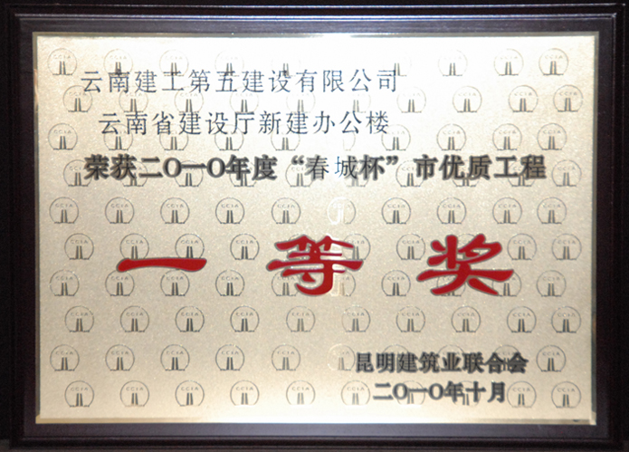 公司承建的云南省建設(shè)廳新建辦公樓榮獲2010年度“春城杯”市優(yōu)質(zhì)工程一等獎(jiǎng)