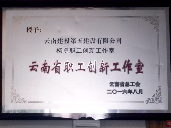 公司技術(shù)中心被云南省總工會授予云南省職工“創(chuàng)新工作室”榮譽(yù)