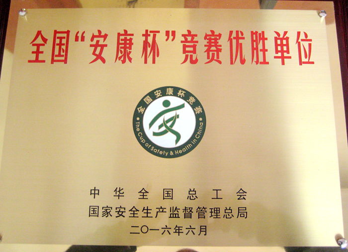 公司被授予“全國‘安康杯’競賽優(yōu)勝單位”稱號