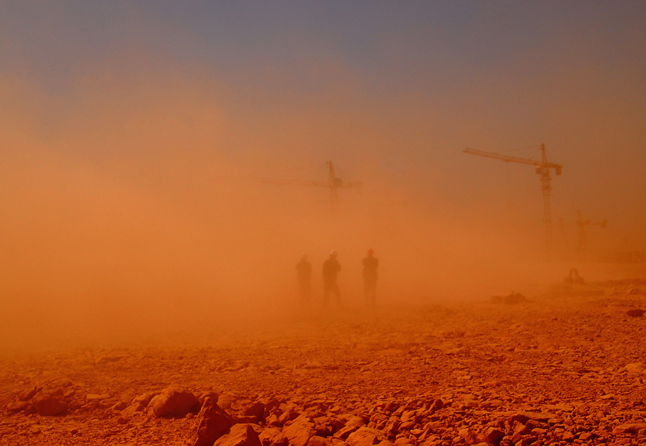 [國(guó)慶征文]風(fēng)中的工地---在遍野風(fēng)塵的昆明新機(jī)場(chǎng)工地作業(yè)的云南五建員工
