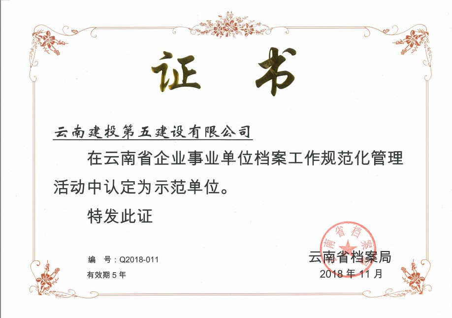 11月15日,公司通過云南省企業(yè)事業(yè)單位檔案工作規(guī)范化管理認定審核,榮獲“云南省檔案工作規(guī)范化管理示范單位”稱號,成為集團內(nèi)第三家通過檔案工作規(guī)范化管理審核認定的單位。