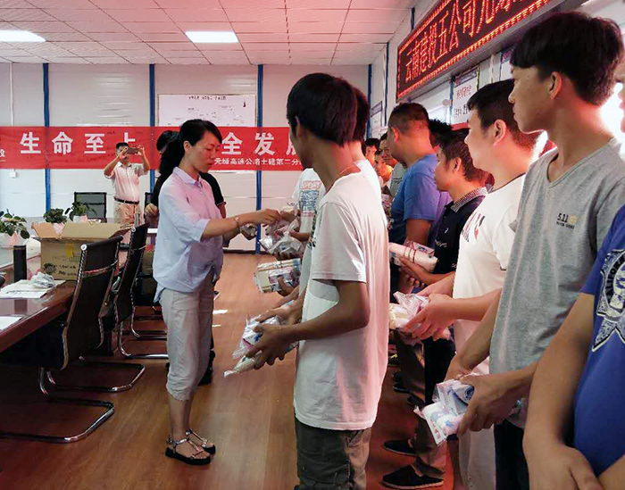 活動(dòng)中,公司工會(huì)分別為奮戰(zhàn)在項(xiàng)目一線的職工工發(fā)放了毛巾、香皂等慰問(wèn)品,還為全體職工、農(nóng)民工送去了清涼油、藿香正氣水、板藍(lán)根沖劑、夏桑菊顆粒、保濟(jì)丸等防中暑藥物。過(guò)程中,冷蕊與項(xiàng)目部職工和農(nóng)民工代表進(jìn)行了親切交談,了解項(xiàng)目部衣食住行及防暑降溫措施,傾聽(tīng)職工心聲與述求,囑咐項(xiàng)目部在生產(chǎn)時(shí),一定要關(guān)注高溫中暑和戶外施工人員疲勞因素等帶來(lái)的安全事故隱患宜,時(shí)刻牢記安全生產(chǎn)使命。