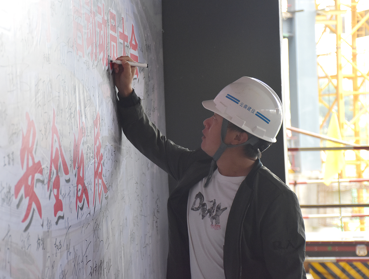 所有參會人員在安全生產(chǎn)月簽到墻上鄭重簽字,出席會議的領導為農民工班組發(fā)放了安全知識讀本。當天下午,公司各基層單位經(jīng)理、黨支部書記在公司安全生產(chǎn)部的帶領下參觀了四公司云璽城市花園A1地塊三期項目,借鑒安全文化建設。