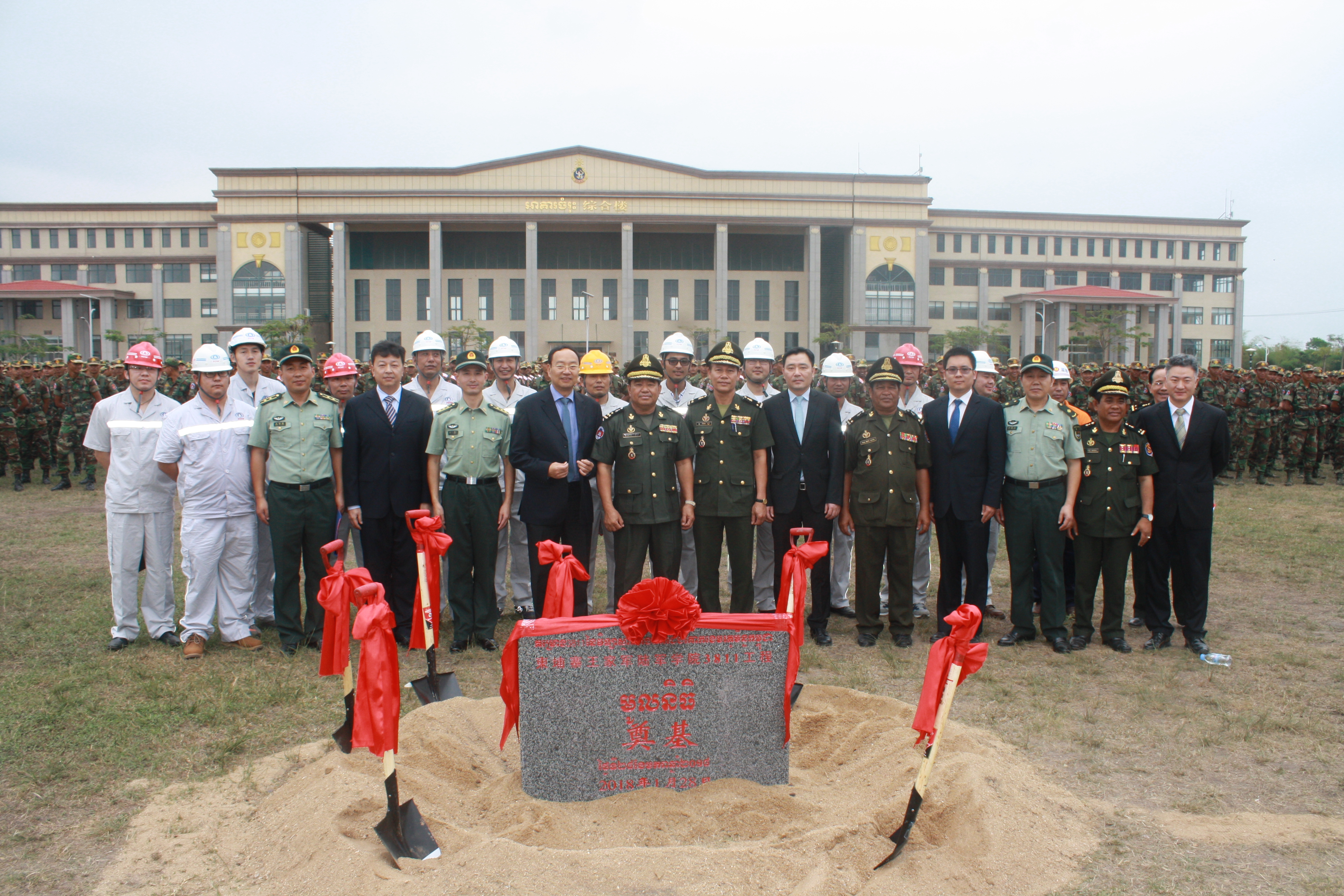 2018年1月28日上午,由公司第六直管項目部施工的中國援柬埔寨王家軍陸軍學院3811工程舉行奠基儀式。