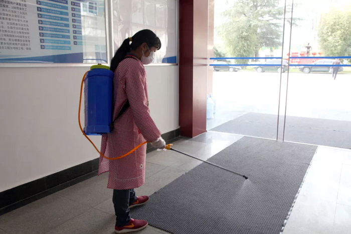 “辦公區(qū)域都能聞到消毒水的味道,辦公環(huán)境很安心?!睘榱思訌?qiáng)清潔消毒管理,保證辦公區(qū)域衛(wèi)生,公司安排清潔員每4小時(shí)對(duì)公司機(jī)關(guān)門廳、樓道等公共區(qū)域進(jìn)行1次消毒,對(duì)門把手、座椅扶手高頻接觸部位每天擦拭消毒2次,同時(shí),設(shè)置了廢棄口罩、廢棄手套等特殊有害垃圾的專業(yè)使用垃圾桶。