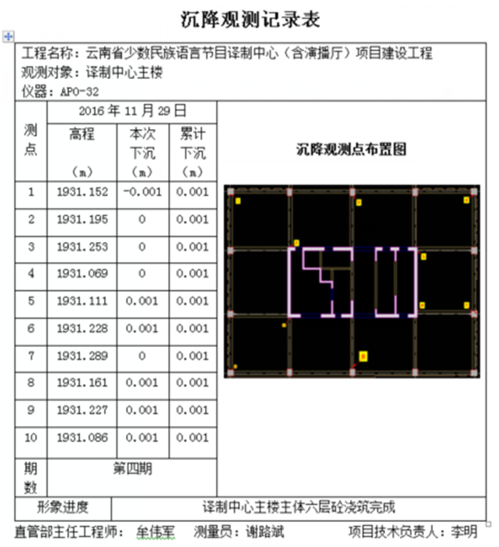 沉降觀測記錄表