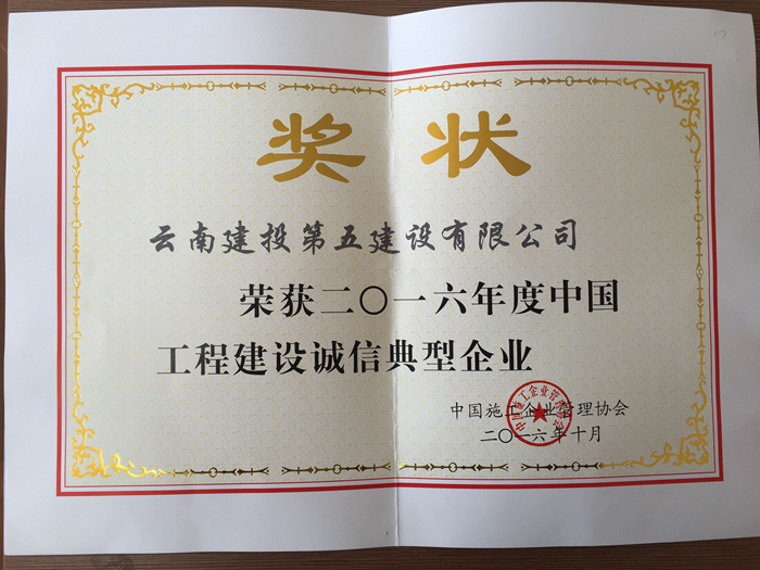 近年來,公司認(rèn)真踐行集團(tuán)“愛崗敬業(yè)、珍惜崗位、誠實守信、依法經(jīng)營”的企業(yè)文化。今年9月,公司順利通過了中施協(xié)“AAA”級信用企業(yè)的復(fù)評,并由云南省建筑業(yè)協(xié)會推薦為“中國工程建設(shè)誠信典型企業(yè)”。