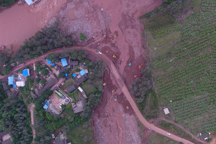 目前元謀縣黃瓜園鎮(zhèn)海洛村委會海洛村海洛箐線路保通、堰塞湖治理等各項救災(zāi)工作正在有序展開。
