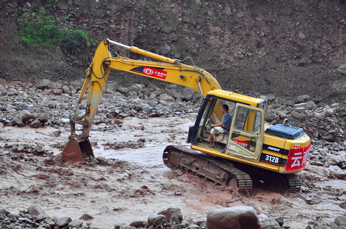 截至20日18時,元謀縣跨龍川江大橋項目部配合武警水電部隊累計完成朱布大箐導(dǎo)流槽開挖約500米、寬約24米、深2.5米,開挖量約3萬立方米,完成堰塞湖體作業(yè)面塊石鋪筑1700平方米。但因降雨持續(xù),加之兩村落地質(zhì)條件復(fù)雜,泥石流滑坡體不斷侵入河道,加大救災(zāi)難度,致使進(jìn)度比較緩慢。