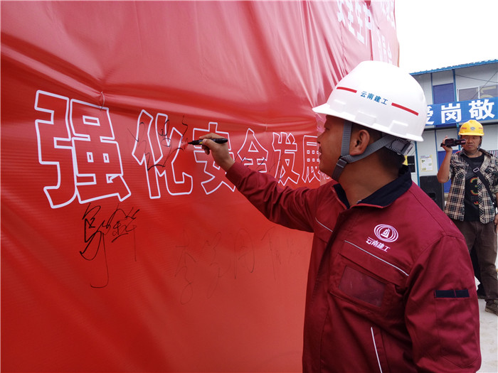 動員會后所有參會人員在安全布標和倡議書上簽字,項目部還組織了項目班組人員在會議室觀看了安全教育片《痛思》。