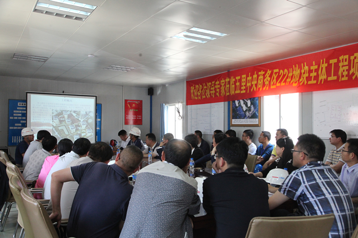 4月14日下午,集團(tuán)總工程師沈家文帶領(lǐng)集團(tuán)總工系統(tǒng)到五〇七直管部施工的五里中央商務(wù)區(qū)項目A22地塊一標(biāo)段觀摩交流,集團(tuán)各子公司總工程師、技術(shù)中心管理人員等共65人參加活動。