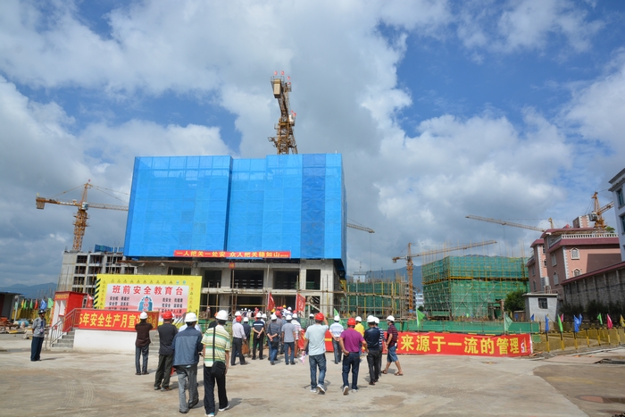 會前,來自玉溪市八縣一區(qū)質(zhì)監(jiān)系統(tǒng)的相關(guān)人員參觀了正在施工的工地現(xiàn)場,了解了項目部在質(zhì)量通病治理的相關(guān)措施,重點(diǎn)學(xué)習(xí)了項目工序樣板區(qū)、鋁合金模板的使用情況和成效。