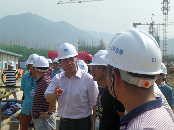 陳文雙一行不顧天氣炎熱,到現(xiàn)場后,便在第一時間了解施工概況,并詳細聽取了各標段項目經理對本標段情況的匯報。陳文雙指出各項目要嚴格按照“四保一控一樹”工作目標推進項目。視察完現(xiàn)場后,陳文雙、楊金親自為項目上的職工及一線工人送上降暑、防暑用品,并詢問了高溫條件下大家的工作和生活條件。楊金指出,高溫條件下各項目部要做好防暑工作,保障一線職工的身體健康。