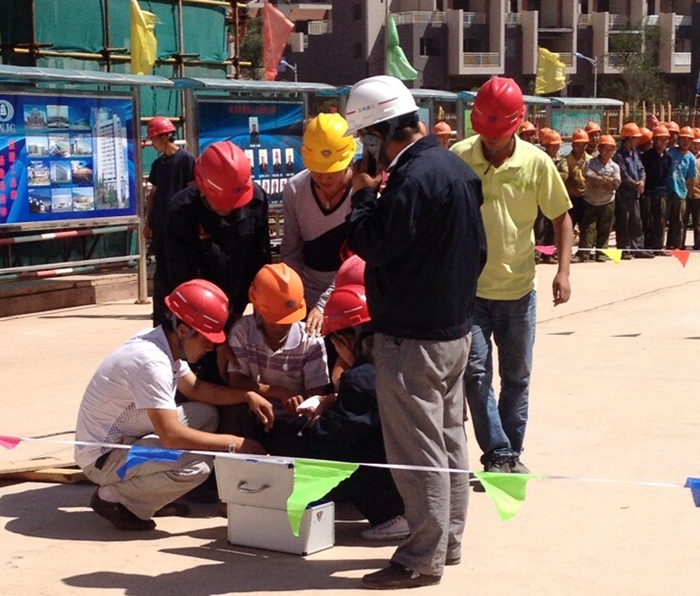 技術(shù)支持: 方森科技 6月25日下午15點(diǎn),由五〇三直管項(xiàng)目部施工的楚雄陽光花園小區(qū)三期保障性住房項(xiàng)目部開展消防演練。楚雄市住房和城鄉(xiāng)建設(shè)局副局長趙興副和楚雄市住建局工程質(zhì)量安全監(jiān)管科副科長申宇等,帶領(lǐng)楚雄市多個(gè)在建工地人員150余人,到由演練現(xiàn)場參觀學(xué)習(xí)。