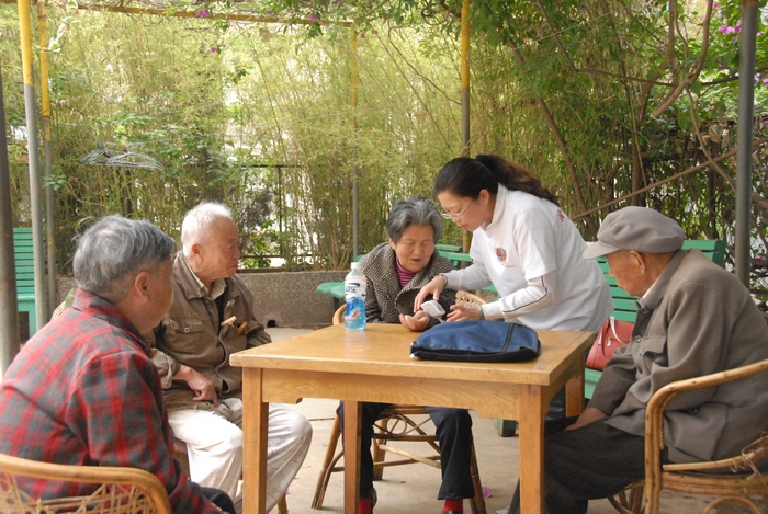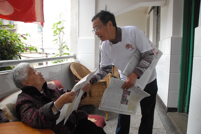 一到敬老院志愿者們就開始忙碌起來,廚房里洗菜、切菜的,房間里抹桌椅、拖地的,院子里陪老人聊天、幫老人測血壓的,還有樓層上分發(fā)公司報紙的,大家忙碌而有序,雖然崗位不同、年齡不同,但相同的是關(guān)愛社會、關(guān)愛他人的志愿服務(wù)之心。