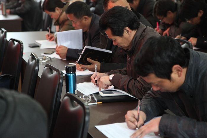 參會人員認真填寫民主測評表