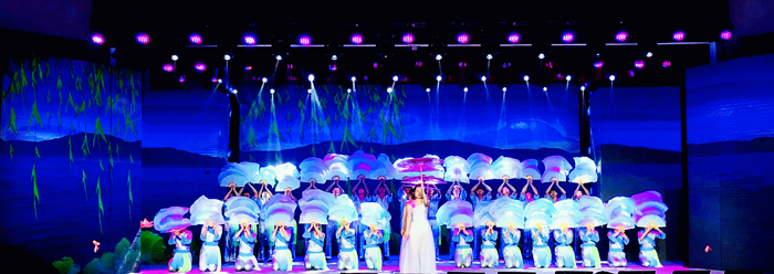 整場晚會由上篇《使命》、下篇《榮光》、尾聲《揚(yáng)帆未來》組成,隨著一抹鮮艷的五星紅旗穿過舞臺,大型舞蹈《在飄揚(yáng)的五星紅旗下》拉開了整場晚會的序幕,烘托了祖國70華誕的喜慶氣氛;職工演唱歌曲《不忘初心》《永遠(yuǎn)跟黨走》唱響了禮贊新中國、奮斗新時代的昂揚(yáng)旋律;群舞《春風(fēng)·春雨》以女職工們的柔情描繪了新時代勃勃生機(jī)的景象;配樂朗誦《我是建投五建人》和音詩畫《使命與榮光》以情景交融的方式,結(jié)合公司項(xiàng)目建設(shè),展現(xiàn)了一批又一批五建人為踐行“匠心筑您滿意”的企業(yè)使命,奉獻(xiàn)青春、追逐夢想,攻堅克難、愛企如家的樸實(shí)情懷;勵志舞蹈《揚(yáng)帆未來》演繹出了五建人堅定信心,團(tuán)結(jié)協(xié)作,為公司高質(zhì)量發(fā)展揚(yáng)帆起航的決心和信心;劇場快閃《我和我的祖國》將整場晚會推向了高潮,演員和觀眾一起揮舞手中的五星紅旗,共同高歌,表達(dá)對祖國母親的祝福;晚會在大合唱《建投之歌》、《歌唱祖國》中落下帷幕。