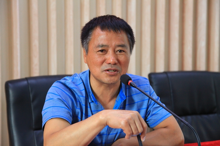 公司董事長(zhǎng)李文智正在主持新員工培訓(xùn)開班儀式