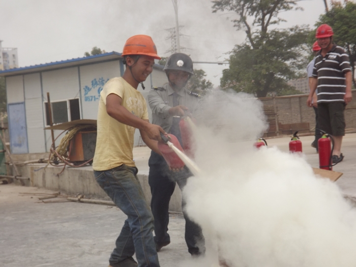 演練重點(diǎn)為撲救電器類火災(zāi)選用的滅火器材類型及注意事項(xiàng),以及職工、民工班組面對(duì)易燃、可燃物品在具備撲火條件時(shí),如何開(kāi)展攻勢(shì)撲滅火災(zāi)。