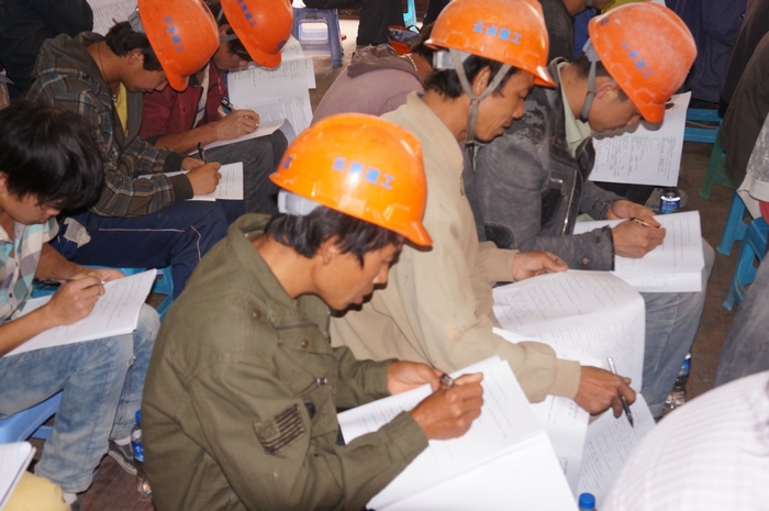 根據(jù)云南建工集團(tuán)培訓(xùn)中心2013年對農(nóng)民工專業(yè)技能培訓(xùn)取證的要求,項(xiàng)目部提前租借了河北社村委會會堂作為培訓(xùn)地點(diǎn),邀請了集團(tuán)培訓(xùn)中心的老師進(jìn)行授課,直管部主要領(lǐng)導(dǎo)也參與了培訓(xùn)活動。