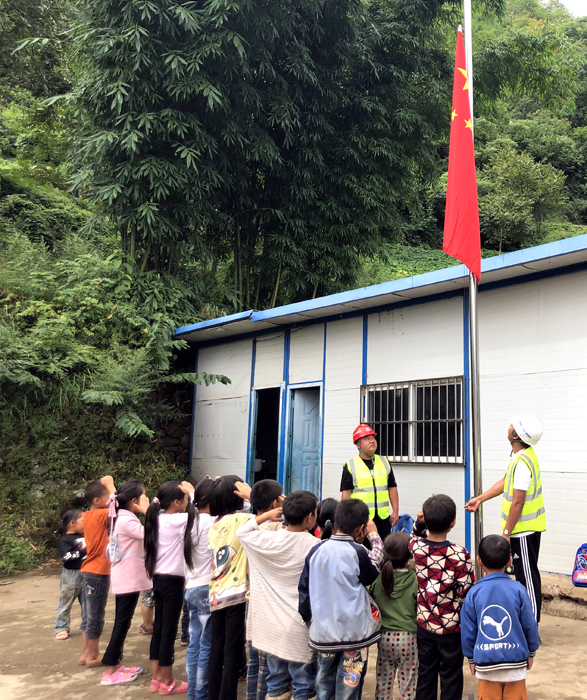 隨后,項(xiàng)目部成員和孩子們一起舉行了升旗儀式,嶄新的國(guó)旗隨著國(guó)歌緩緩上升。路橋四部傳遞愛(ài)心,延續(xù)希望一直在行動(dòng),愿溫暖播種在他們心間。盼祖國(guó)的未來(lái)開(kāi)心快樂(lè),祝愿他們健康成長(zhǎng)!