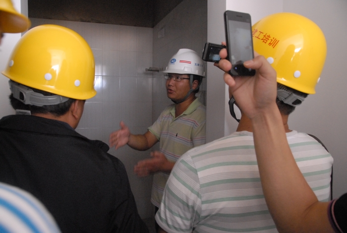 到項目參觀學(xué)習(xí)的技術(shù)骨干,是集團(tuán)首批項目總工及技術(shù)負(fù)責(zé)人培訓(xùn)班的學(xué)員,在項目部人員的介紹下,學(xué)員們了解了整個項目的建設(shè)情況,并重點(diǎn)了解了過程工序樣板房的打造和實施。在項目部人員的陪同下,學(xué)員們參觀了樣板房實體。部分學(xué)員還在參觀學(xué)習(xí)中與項目部管理人員展開了交流討論。