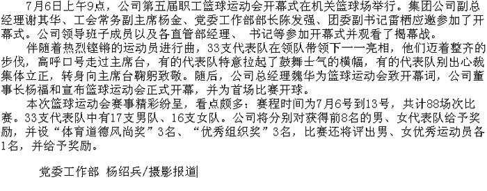 公司董事長(zhǎng)楊福和為運(yùn)動(dòng)會(huì)開(kāi)幕