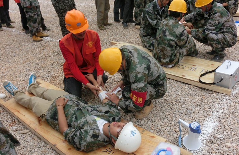 為配合安全生產(chǎn)月活動(dòng),晉寧縣安企居住區(qū)指揮部組織了本次應(yīng)急演練,安企居住區(qū)十二家兄弟公司集聚五〇三直管部施工的第四標(biāo)施工現(xiàn)場(chǎng),積極進(jìn)行演練。五〇三直管部共有180人參加了這次演練,通過對(duì)三項(xiàng)突發(fā)事故的演練,提高了工作人員對(duì)突發(fā)事故的處置能力。