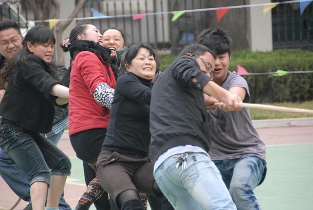 就在大家都以浪漫、溫情的方式慶?!叭ぐ恕钡臅r候,機關卻以一種力量的方式來慶祝這個節(jié)日,3月8日這天下午,機關舉行了一場別開生面的拔河賽。各部室人員摩拳擦掌,比賽一開始就把氣氛推向了高潮,口號聲、加油助威聲、參賽隊員鞋子與地面的摩擦聲不絕于耳,平日里踩著高跟鞋的女職工們也都換上了運動鞋,和男職工一塊齊驅作戰(zhàn),以巾幗不讓須眉的姿態(tài)度過了“三八”節(jié)。