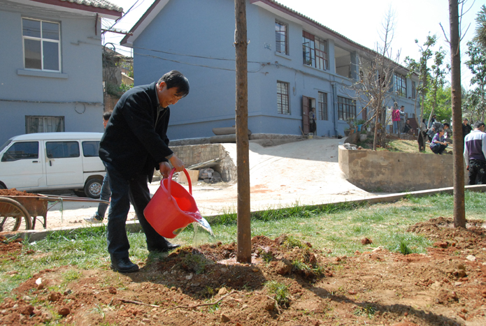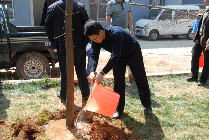 圖為公司董事長、黨委書記楊福和在為樹苗澆水。