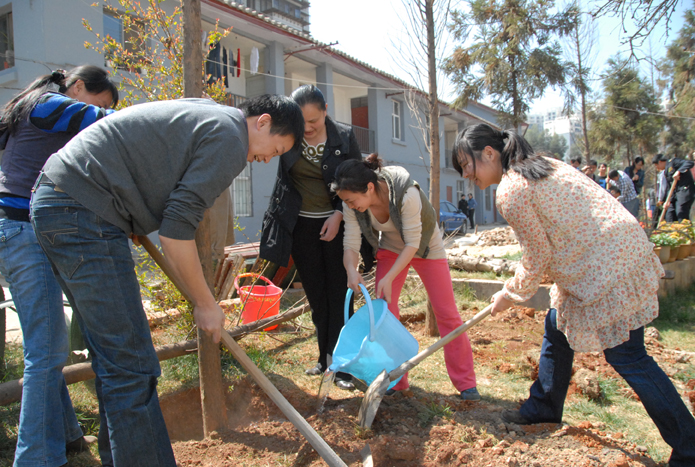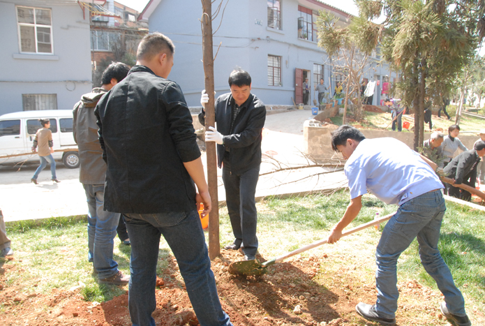 圖為公司機關(guān)職工正在植樹。