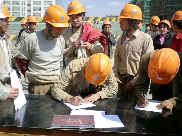 活動圍繞有關(guān)法律法規(guī)、務(wù)工人員的安全須知、各種通用作業(yè)的安全要求、務(wù)工人員的權(quán)利和義務(wù)以及日常生活安全常識等內(nèi)容對操作班組進行集中教育和培訓(xùn)。并以施工作業(yè)中“不傷害自己,不傷害別人,不被別人傷害”為主題,講解了安全帽的正確佩戴方法、高空作業(yè)的防護措施、突發(fā)性事故的自救常識、重點培訓(xùn)了“施工現(xiàn)場操作人員安全操作手冊”內(nèi)容。
