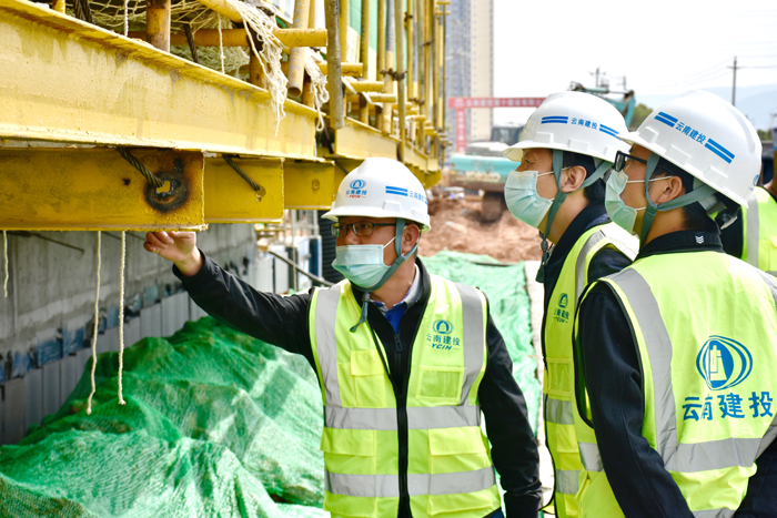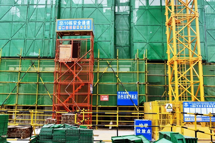 在聽(tīng)取了空港項(xiàng)目整體實(shí)施策劃方案后,項(xiàng)目經(jīng)理莊偉帶領(lǐng)大家從項(xiàng)目大門口開(kāi)始現(xiàn)場(chǎng)參觀。大門口張貼總平面布置圖、三維場(chǎng)布圖、公司宣傳畫冊(cè)、崗位職責(zé)等,設(shè)置門禁系統(tǒng)。主道路及施工道路設(shè)置人車分流,右側(cè)設(shè)置花臺(tái)和形象宣傳,因地制宜打造工地景觀,創(chuàng)造花園式工地氛圍。生產(chǎn)區(qū)左側(cè)設(shè)置安全宣講臺(tái),進(jìn)行安全交底和相關(guān)安全條文學(xué)習(xí)。生產(chǎn)區(qū)主入口設(shè)置實(shí)名制管理通道?,F(xiàn)場(chǎng)采用工具式樓梯,圍擋防護(hù)工具化、定型化,消防點(diǎn)、抽煙點(diǎn)、休息區(qū)、衛(wèi)生間、垃圾投放點(diǎn)等一應(yīng)俱全。各參觀人員不停拿出手機(jī)拍照,對(duì)照自己項(xiàng)目的實(shí)際情況提出問(wèn)題,空港項(xiàng)目管理人員為他們作了詳細(xì)解答。
