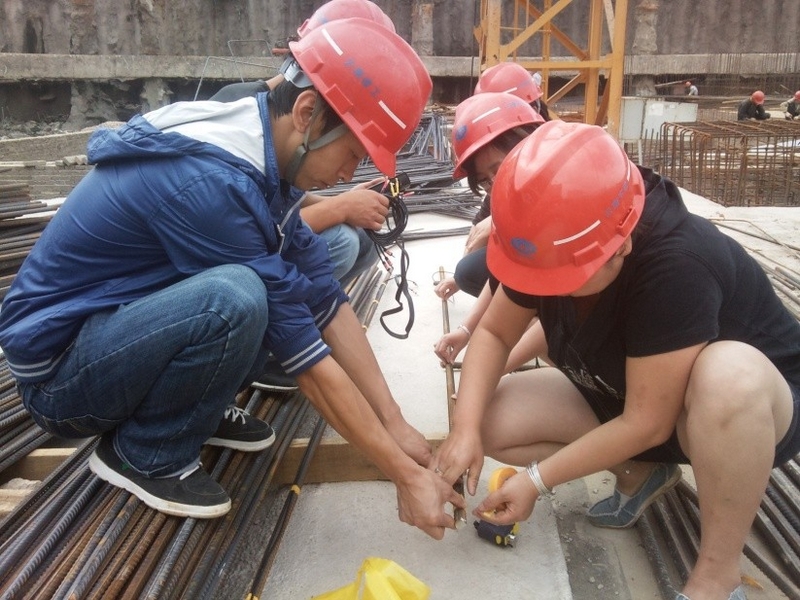 在施工現(xiàn)場(chǎng)學(xué)習(xí)大體積混凝土測(cè)溫