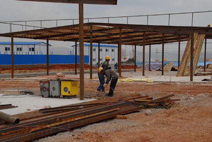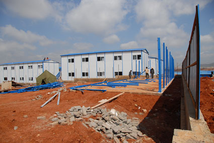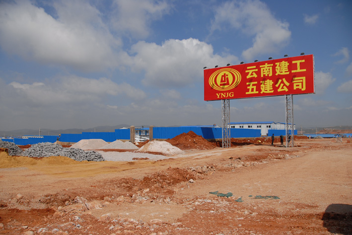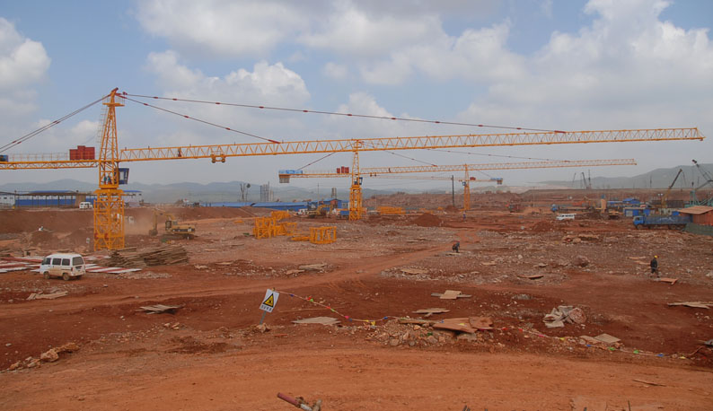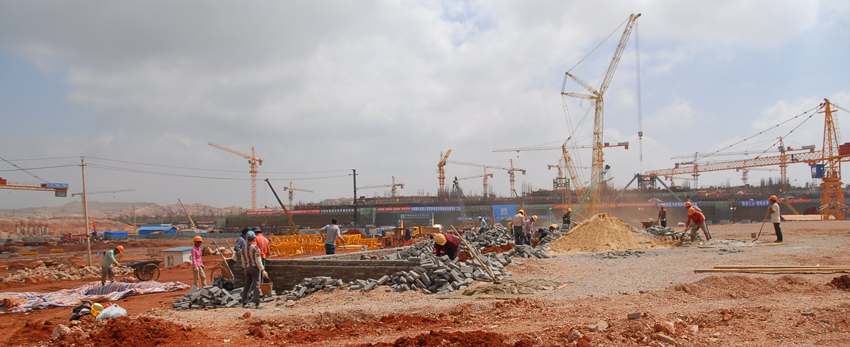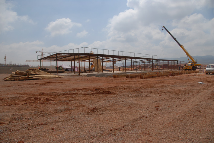 A3 臨設(shè)施工進(jìn)行中。背景是先期開(kāi)工、已在進(jìn)行主體結(jié)構(gòu)施工的航站樓工程。