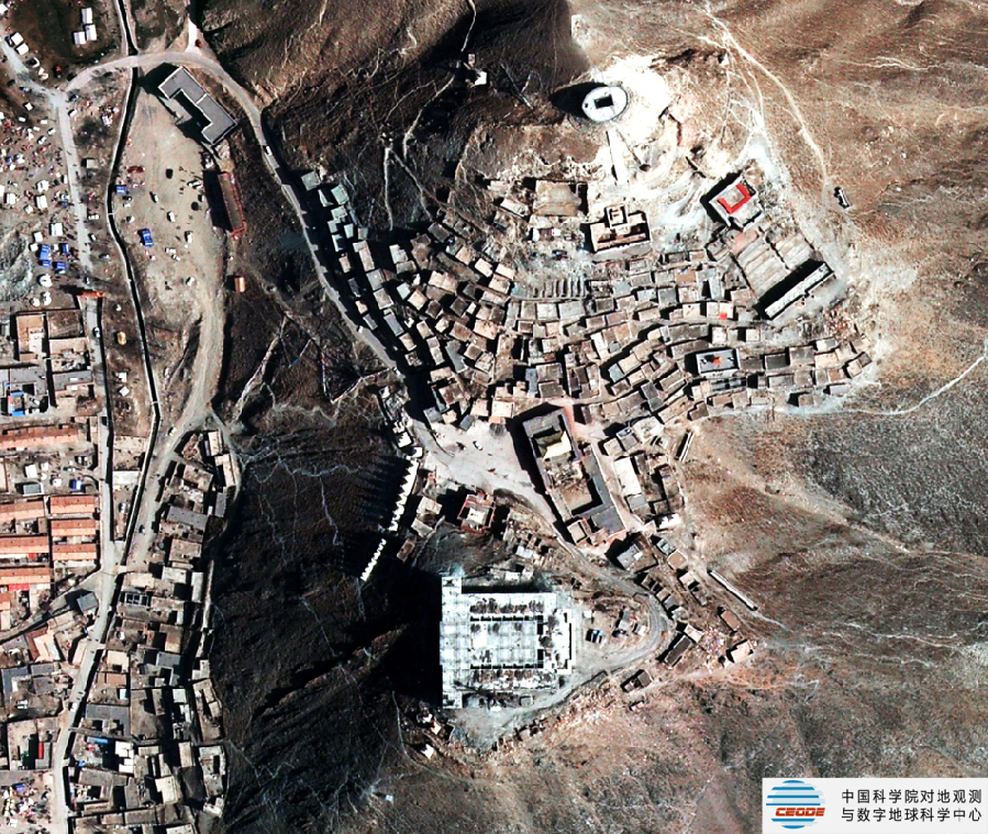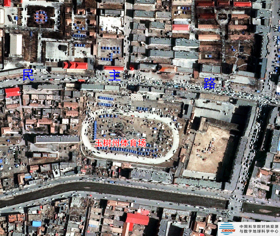 圖片來(lái)源:中科院對(duì)地觀測(cè)中心 災(zāi)后廣場(chǎng)。2010年04月17日 10:46 中科院對(duì)地觀測(cè)中心今日最新公布了玉樹(shù)地震災(zāi)區(qū)的航空遙感圖像。中科院對(duì)地觀測(cè)中心利用2010年4月16日獲取的高分辨率航空遙感數(shù)據(jù),提取出玉樹(shù)州結(jié)古鎮(zhèn)城區(qū)范圍內(nèi)地震破壞最嚴(yán)重或典型地區(qū),使之與GoogleEarth中相應(yīng)位置的震前遙感衛(wèi)星數(shù)據(jù)進(jìn)行對(duì)比,直觀展現(xiàn)結(jié)古鎮(zhèn)在此次地震中的受影響程度。 |