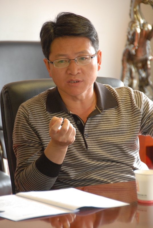 圖為公司總經(jīng)理方菊明在會上研討時場景
