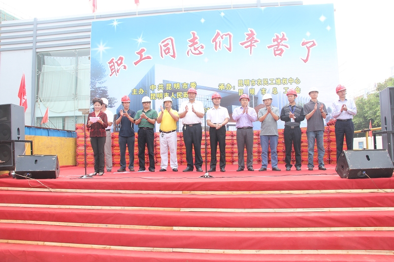 金桂飄香,中秋佳節(jié)即將來臨,昆明市工人文化宮遷建項目工地一片繁忙。8月29日上午,昆明市總工會主席戚永宏一行到工人文化宮遷建項目工地慰問,向建設(shè)者們表達了節(jié)日的問候和祝福。