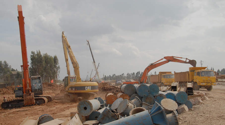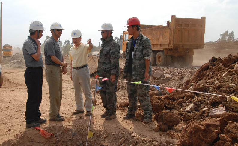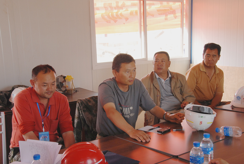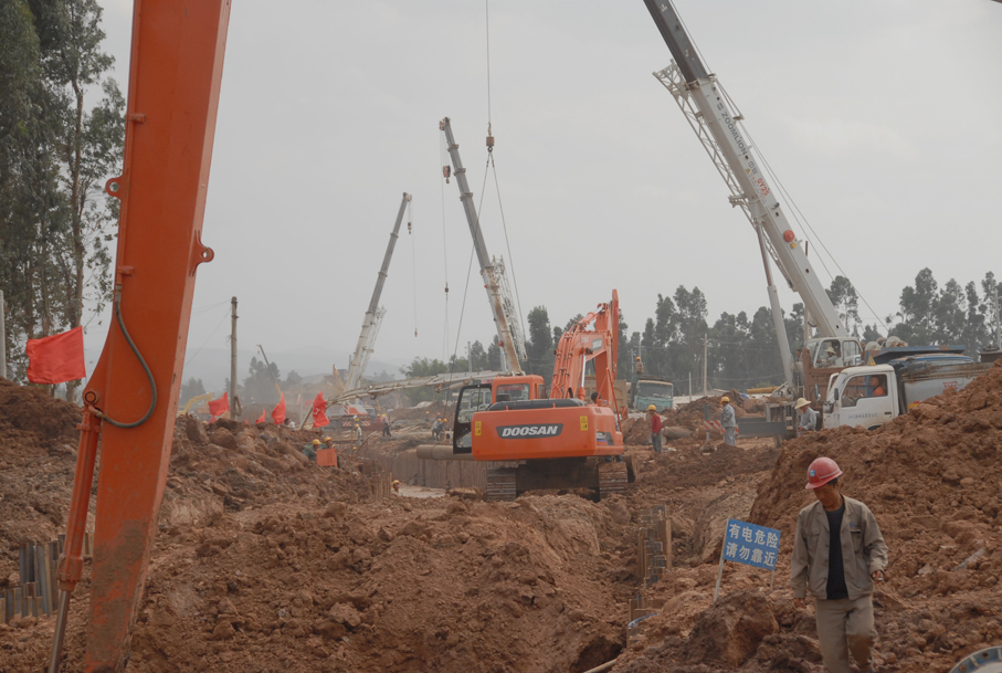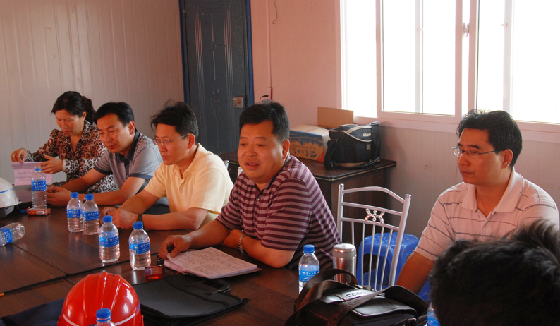 公司副總經(jīng)理兼第三直管部經(jīng)理段培勇介紹了工程施工組織管理情況。該工程的工期十分緊張,從4月6日根據(jù)建工集團(tuán)要求緊急進(jìn)場增援施工以來,五建公司第三直管部、五建市政工程公司以及近日進(jìn)場的503直管部一直晝夜施工,連續(xù)奮戰(zhàn),沒有休過一天的節(jié)假日。工程場地非常狹窄,幾乎天天都要為尋找堆土場地費(fèi)盡心思,還要花費(fèi)大量精力協(xié)調(diào)與當(dāng)?shù)卮迕竦年P(guān)系。在整個(gè)工程施工中,不僅與集團(tuán)內(nèi)兄弟單位展開無形中的勞動競賽,而且還要與國字號的專業(yè)隊(duì)伍同臺競技。參建同志決心為公司和集團(tuán)榮譽(yù)全力一搏,以優(yōu)秀的建設(shè)業(yè)績報(bào)答上級的信任。針對施工現(xiàn)場地處低洼排水不暢、淤積泥土極其松軟的地質(zhì)條件,提出了分工合作、協(xié)同作戰(zhàn),搶在雨天到來之前全力拼搏搶進(jìn)度的工作思路。