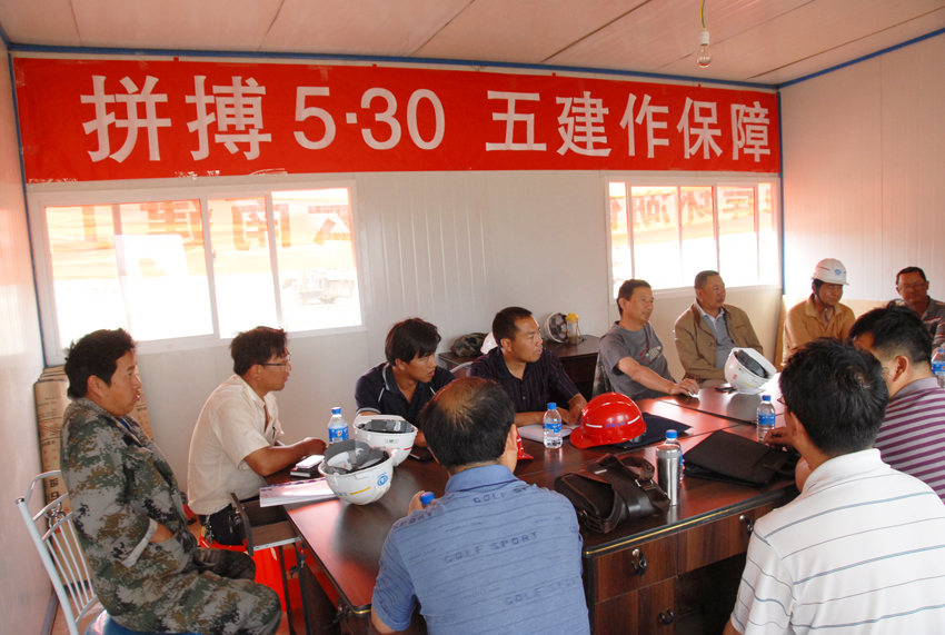 5月12日,五建公司在施工現(xiàn)場召開動員表彰會,對公司參建基層單位第三直管部、五建市政工程公司和503直管部進(jìn)行了表彰獎(jiǎng)勵(lì)。并為提前完成指揮部提出的5月30日節(jié)點(diǎn)施工目標(biāo)任務(wù)進(jìn)行了動員。