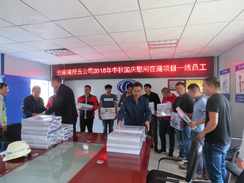 9月21日,五公司副總經(jīng)理?xiàng)钣来砉镜较沱惛咚偈还^(qū)項(xiàng)目部進(jìn)行雙節(jié)慰問。 楊永傳達(dá)了公司對(duì)一線員工的節(jié)日祝福,并對(duì)員工的努力工作給予肯定,希望員工在今后的工作中再接再厲,爭(zhēng)取做得更好。隨后送出了公司的慰問品,把月餅和床上用品三件套親手送到每個(gè)員工手中,讓他們感受到公司的祝福。同時(shí)也給奔波在工地的農(nóng)民工朋友送上月餅,對(duì)他們?cè)诠さ氐男量鄤趧?dòng)表示由衷感謝。 ...
