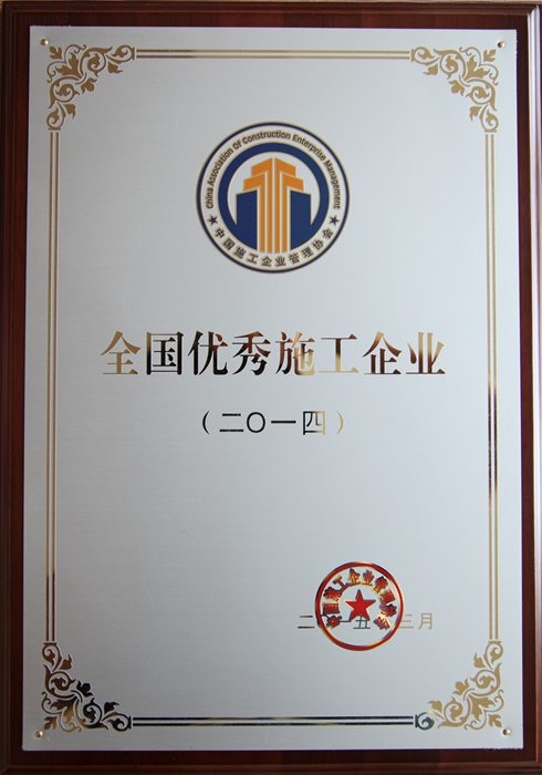 公司獲中施企協(xié)2014年度全國優(yōu)秀施工企業(yè)榮譽(yù)稱號(hào)