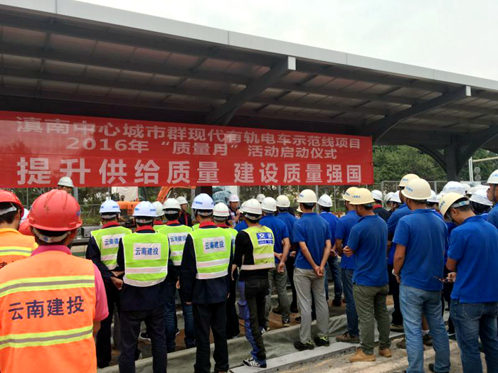 蒙自有軌電車項目部參加“質(zhì)量月”活動啟動儀式